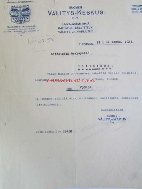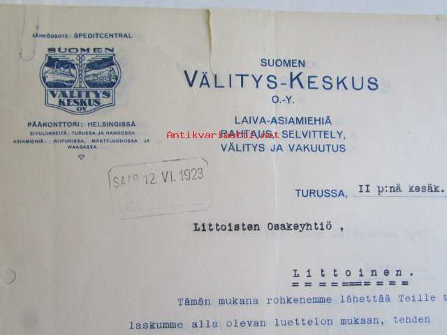 Suomen Välitys-Keskus Oy, Turussa 2. kesäkuuta 1923 -asiakirja