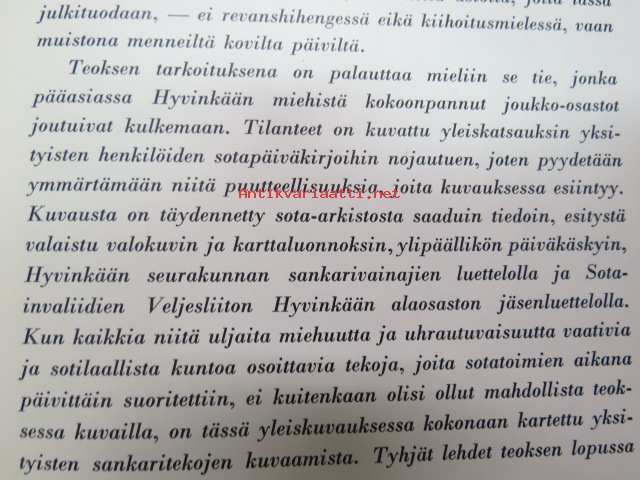 Kohtalojen tie (...teoksen tarkoituksena on palauttaa mieliin se tie, jonka pääasiassa Hyvinkään miehistä kokoonpannut joukko-osastot joutuivat kulkemaan....)