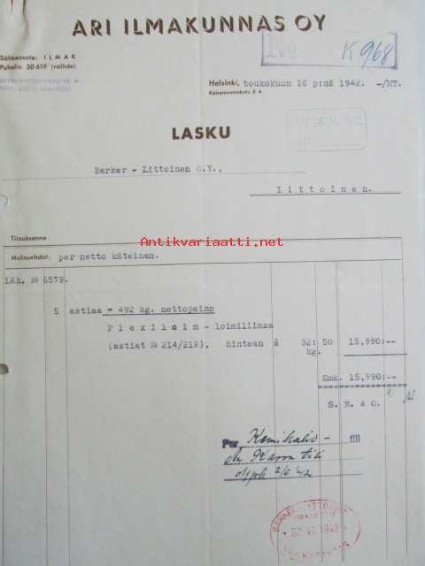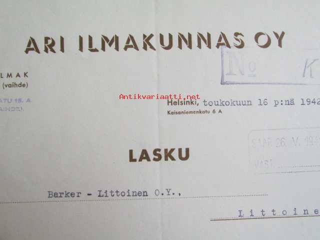 Ari Ilmakunnas Oy, Helsinki toukokuun 16. 1942. -asiakirja