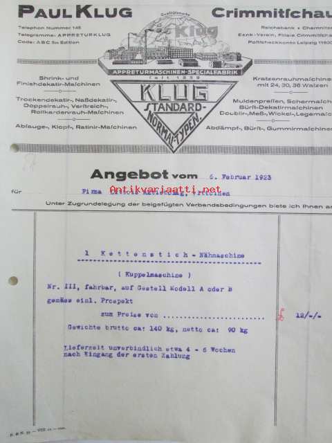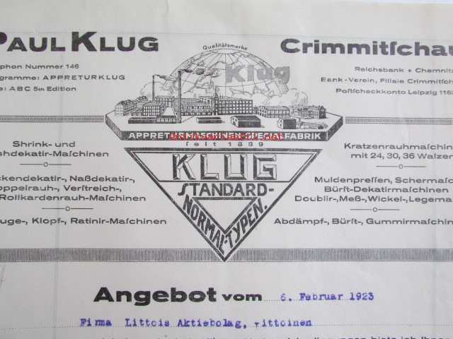 Paul Klug Crimmitfchau, Angebot 6. februar. 1923. -asiakirja