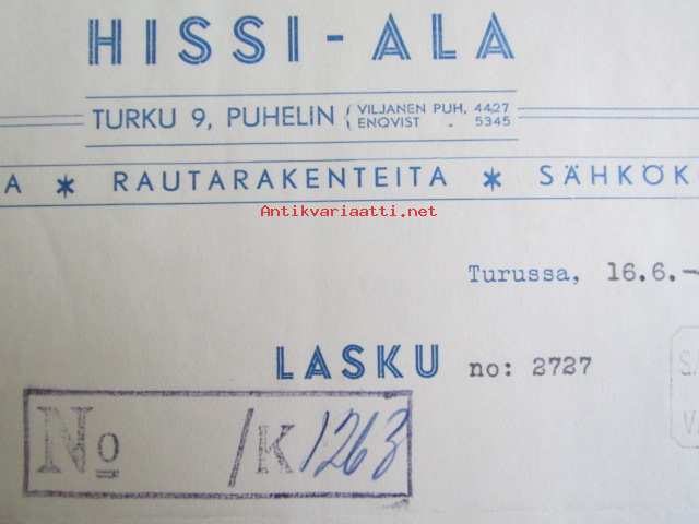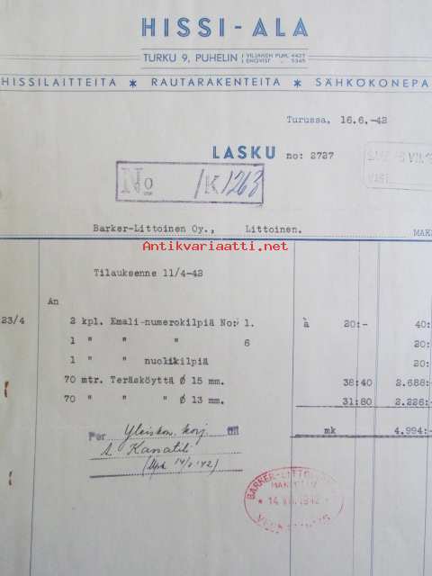 Hissi-Ala, Turussa 16.6. 1942. -asiakirja