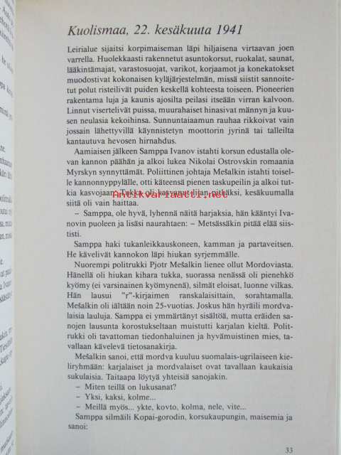 | Saatavilla | 2 kpl | | Julkaisuvuosi | 1988 | | Sivuja | 286 | | Painos | 2. | | Kunto | K3 | | Sidonta/painoasu | Sidottu (kansipaperit) | | Kielet | Suomi |