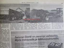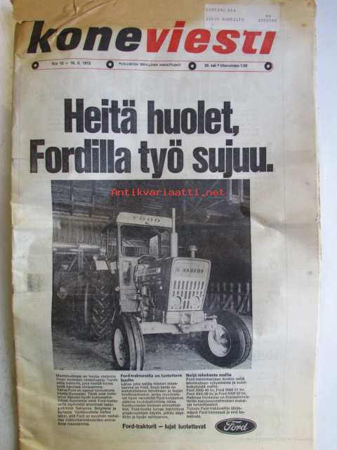 Koneviesti 1972 nr 10 -mm. Pohjoismaista maatalous- ja metsäkoneteollisuutta II Suomi, Ford 5000 KV:n traktoritestissä, Viljavuuspalvelu, Tuottaisinko