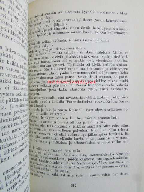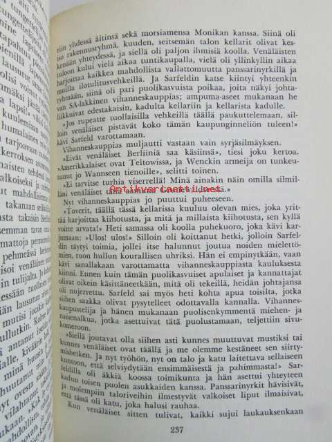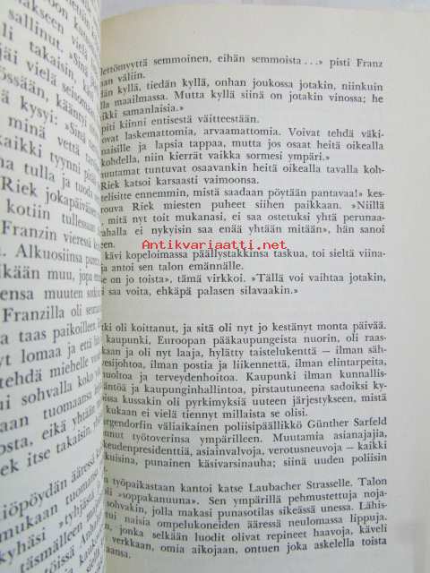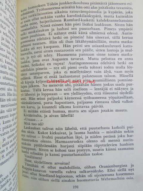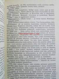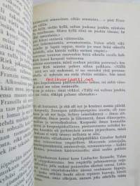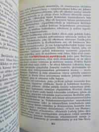 | Saatavilla | 1 kpl | | Julkaisuvuosi | 1955 | | Sivuja | 354 | | Painos | 1. | | Kunto | K2 | | Selkä kulunut ajan saatossa | | Sidonta/painoasu | Sidottu (kovak.) | | Kielet | Suomi |
