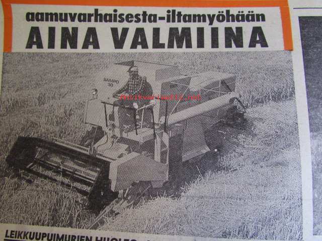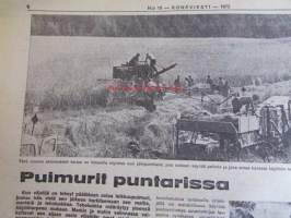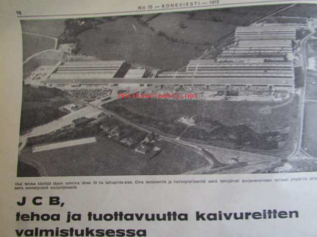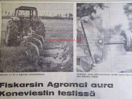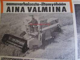 Koneviesti 1972 nr 15 -mm. Fiskarsin Agromat-aura KV:n testissä, Puimurit puntarissa, Näkymiä farmilta Englannista, JCB tehoa ja tuottavuutta kaivureitten