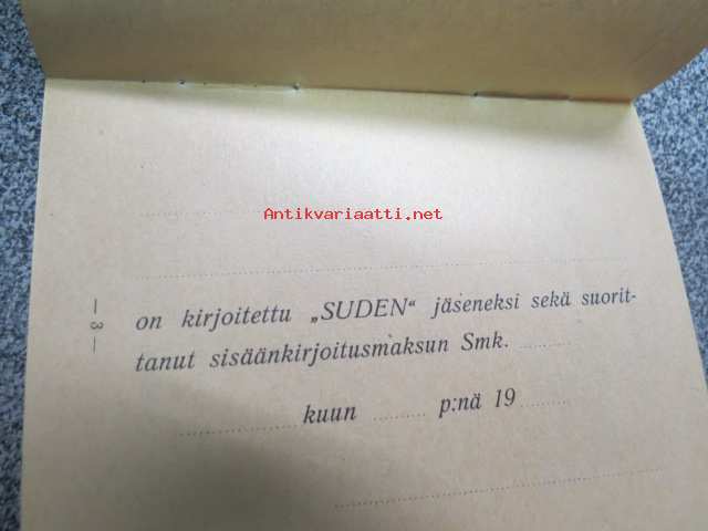 Nousisaisten V. ja U.-seura "Suden" jäsenkirja, käyttämätön jäsenkirja vuodelta 1917