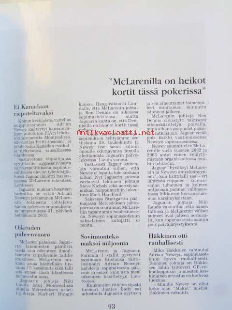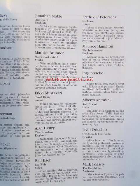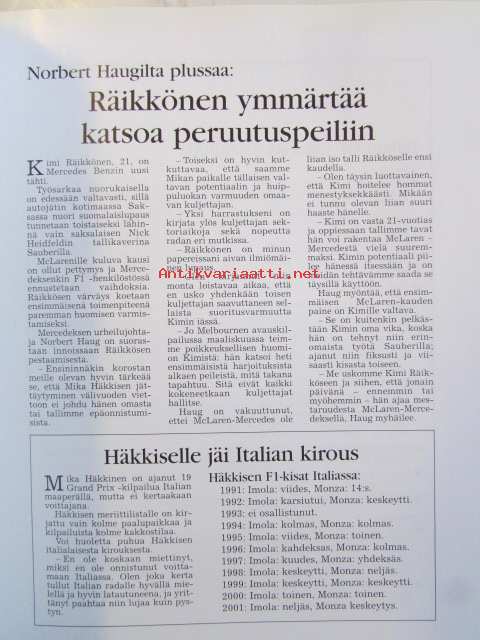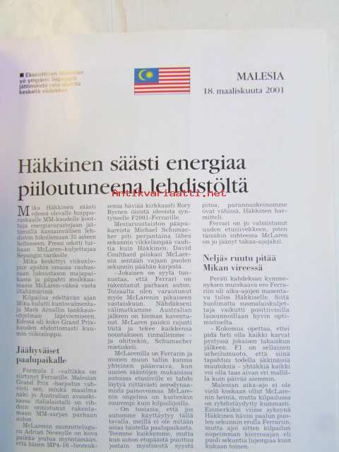 Tuskien Grand Prix Raportti maailmanmestari Mika Hälkkisen Formula 1 -kilpailukaudesta