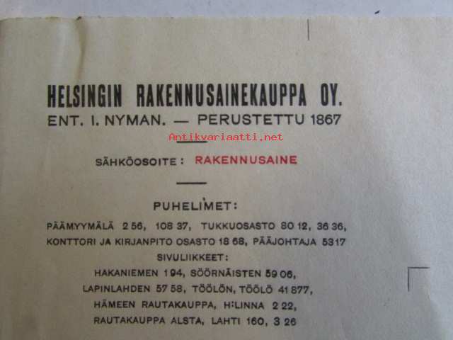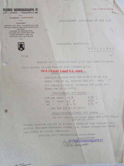 Helsingin Rakennusainekauppa Oy, Helsingissä heinäkuunn 26. 1923. - asiakirja