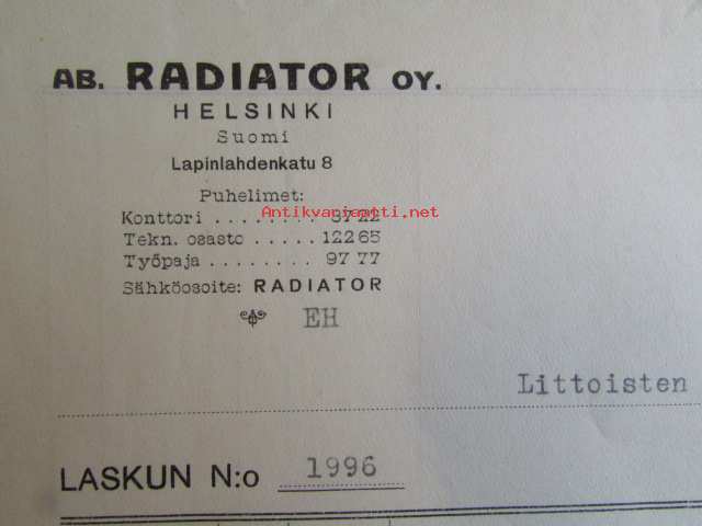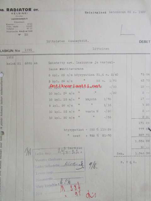 Ab Radioator Oy, Helsingissä heinäkuun 25. 1922. - asiakirja