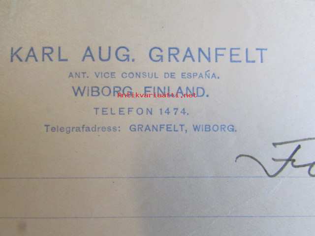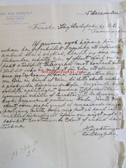 Karl Aug. Granfelt Wiborg Finland, Wiborg 5. december - asiakirja