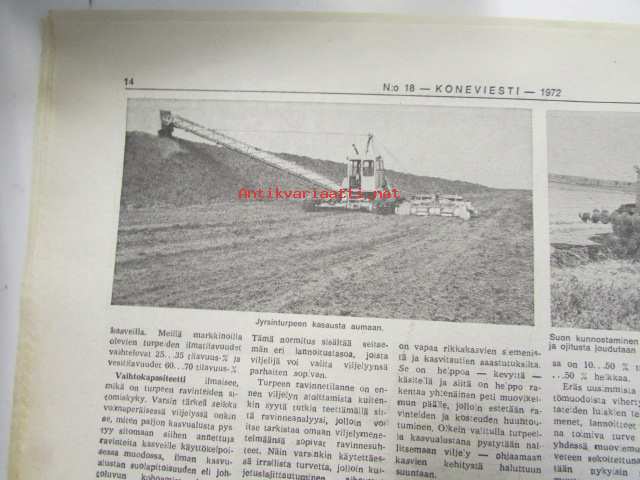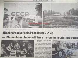 Koneviesti 1972 nr 18 -mm. Selkhozteknika -72, Kuiva viherlinja, Perävaunu maatilan työkone, Turpeessa sen salaisuus, Karjatilöa lännen malliin, Vakolan