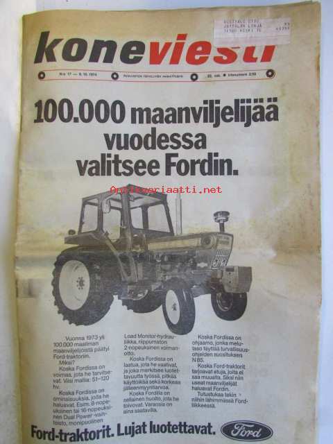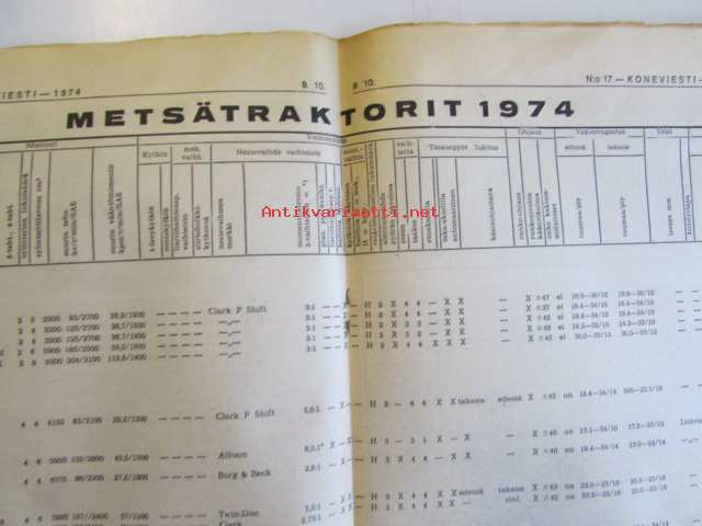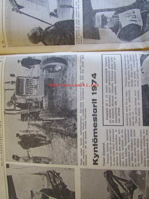 Koneviestin Ammattilehdet Oy, 1974Koneviesti 1974 nr 17 -mm. Tuleeko maissi Suomeen, Kyntömestarit 1974, Maatalouskoneasentajia koulutetaan, Metsätraktorit 1974, Tuloksia kokopuuhaketuksista, Kockum 850 testissä, Mailta teiltä ja vesiltä, Renkaitten kitinää, Kaasukaarihitsaus IV, Konetyön tuntikorvaukset, Renkaiden kitinää, Maarakennuskoneiden kuljettajien koulutus ja työturvallisuus, katso kuvista tarkempi sisältö.