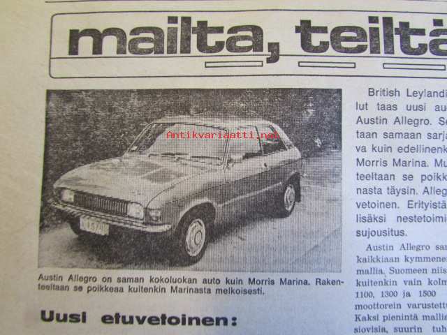 | Saatavilla | 2 kpl | | Julkaisuvuosi | 1974 | | Sivuja | 40 | | Kunto | K2 | | Sidonta/painoasu | Lehti | | Kielet | Suomi |