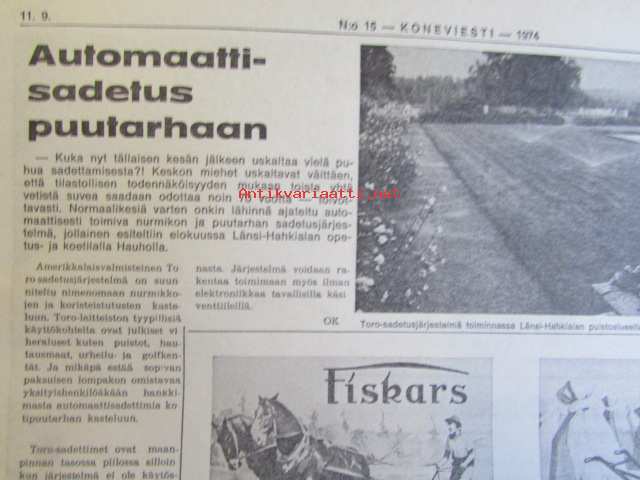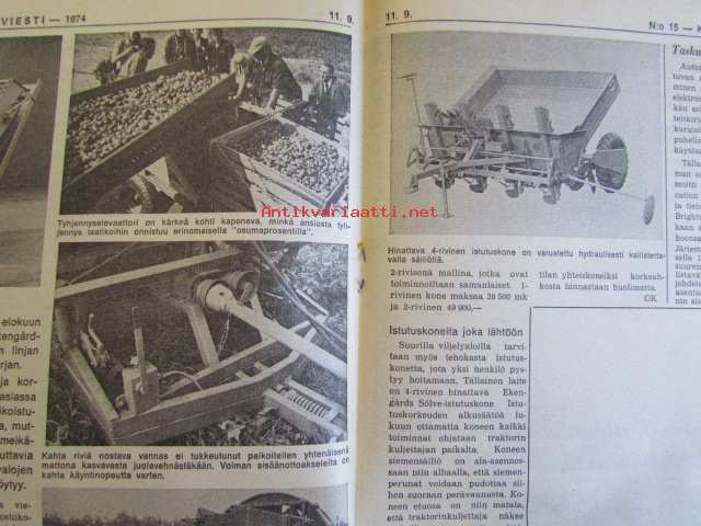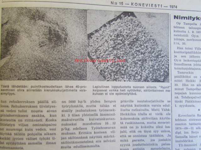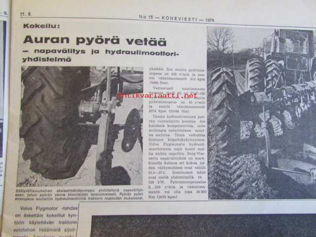 Koneviesti 1974 nr 15 -mm. Näyttelyissä nähtyä, Maailman kyntöhuiput Viikissä, Vaihtelua viljelykiertoon, Kotitarvemyllyjä, Tuoresäilötyn viljan