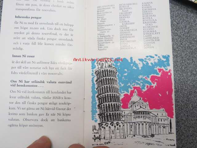 Helsingfors Aktiebank Tips för utlandsresande 1956 -esite