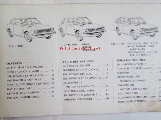 Honda Civic 1200/1500 Owner´s manual