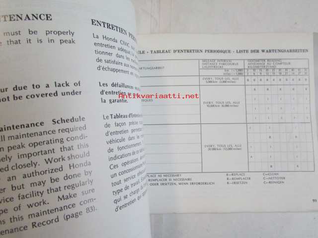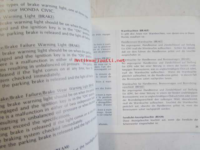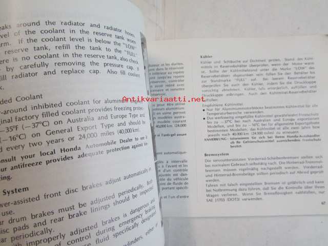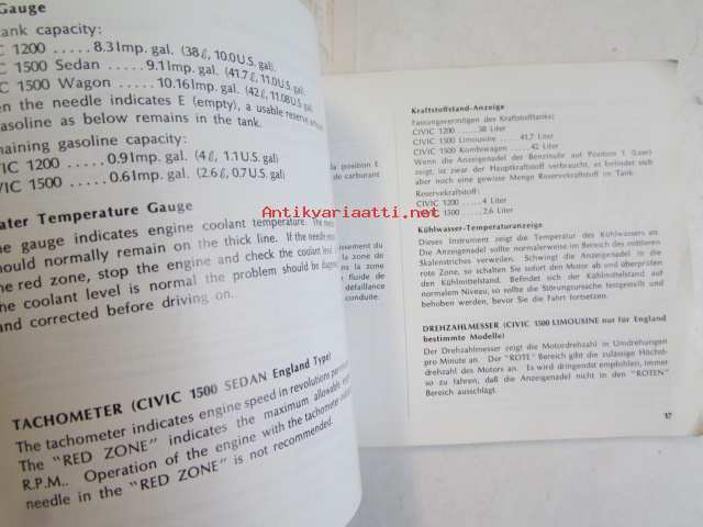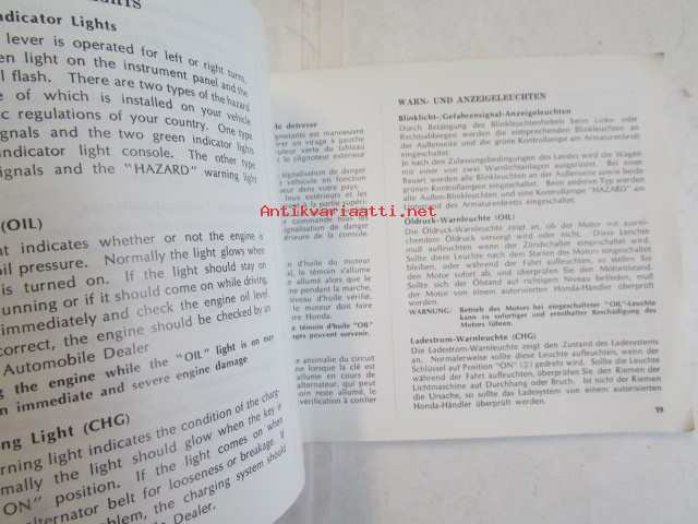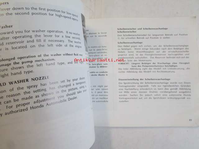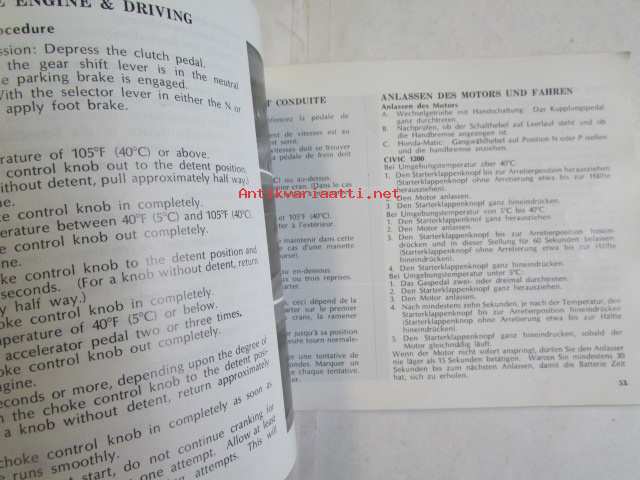Honda Motor Co, 1975Käyttöohjekirja englanniksi, ranskaksi ja saksaksi.
