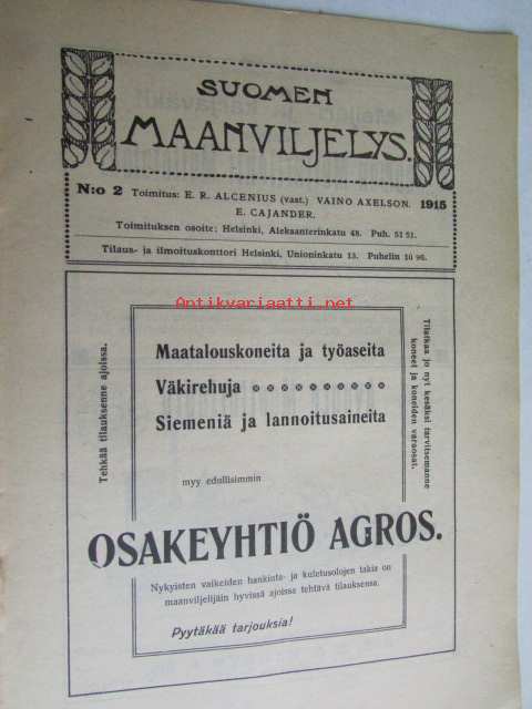 Suomen Maanviljelys 1915 nr 2, Säfstaholmin omena, nuorten hevosten kengittämisestä, Wickströmin moottorit