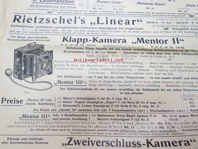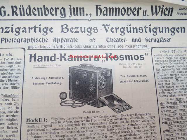 G. Rüdenberg jun. Hannover -kameramainos 1900-luvun ensimmäiseltä vuosikymmeneltä