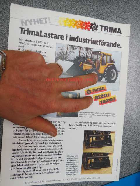 Trima 1620i, 1820i frontlastare -myyntiesite ruotsiksi ( 1 A4 arkki)