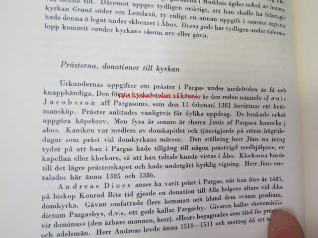 Pargasbygdens historia I Del I:1 Kyrkan och dess skrud, del I:2 församlingen och prästerskapet