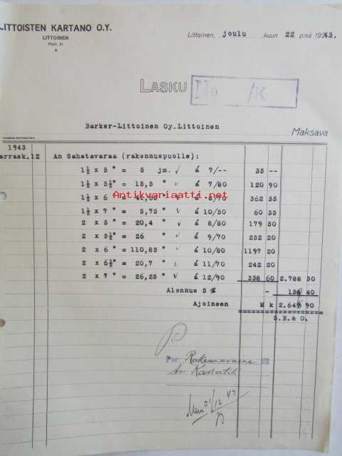 Littoisten Kartano, Littoinen joulukuun 22. 1943. - asiakirja