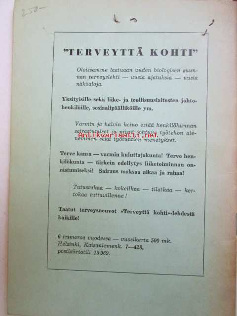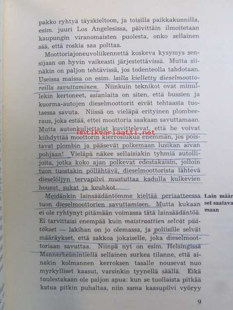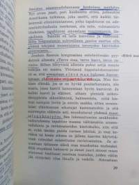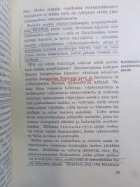 | Saatavilla | 1 kpl | | Julkaisuvuosi | 1958 | | Sivuja | 48 | | Kunto | K2 | | Kirjassa löytyy kynämerkintöjä ja eiheeseen liittyviä lehtileikkeitä. | | Sidonta/painoasu | Nidottu (pehmeäk.) | | Kielet | Suomi |