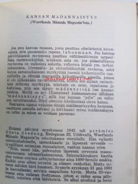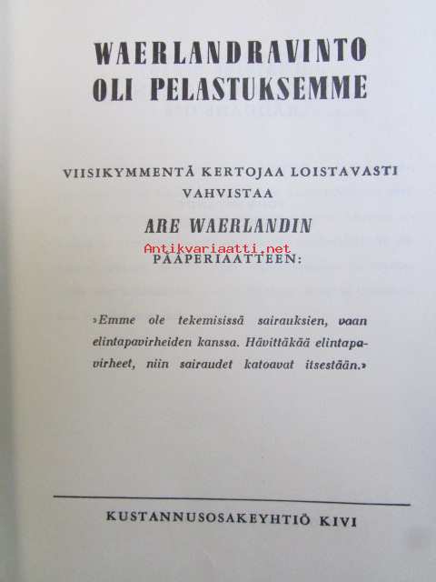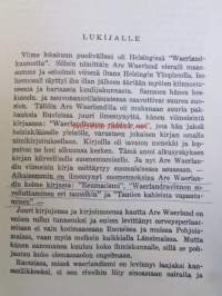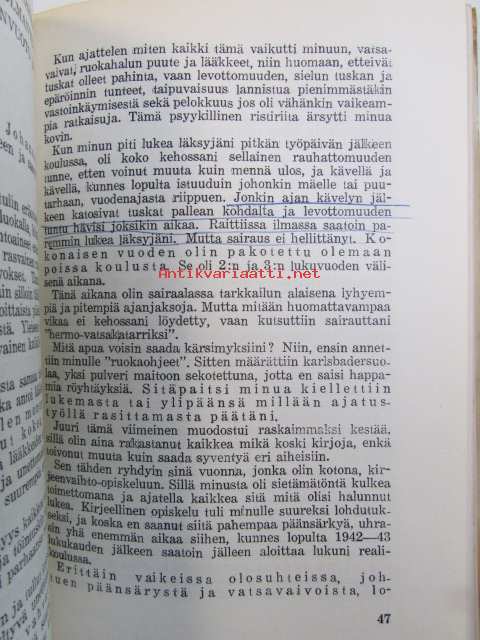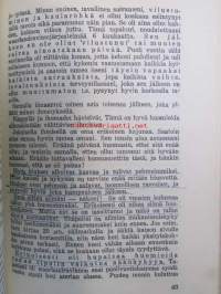 | Saatavilla | 1 kpl | | Julkaisuvuosi | 1948 | | Sivuja | 190 | | Kunto | K2 | | Sidonta/painoasu | Nidottu (pehmeäk.) | | Kielet | Suomi |