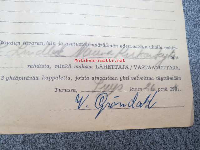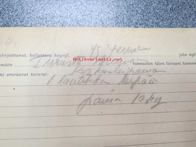 Höyrylaiva "Fenno" Turku-Nauvo 26.9.194? -konossomentti