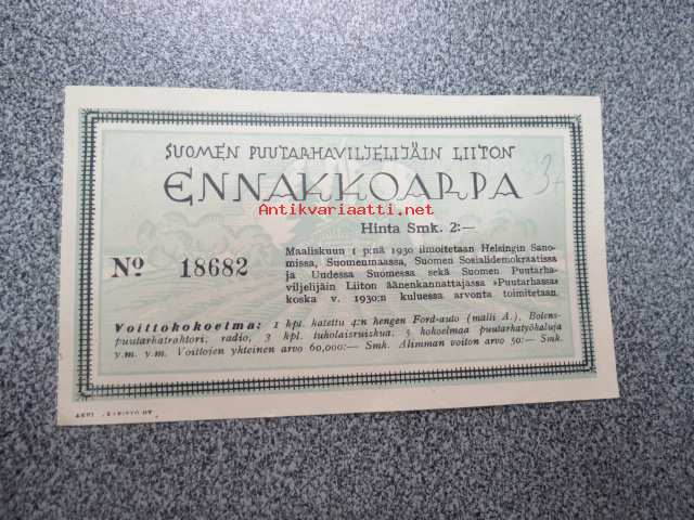 Suomen Puutarhaviljelijäin Liiton Ennakkoarpa nr 18682