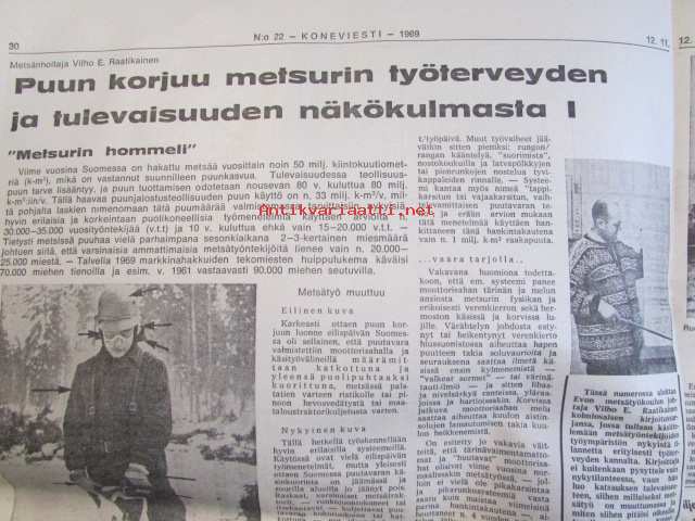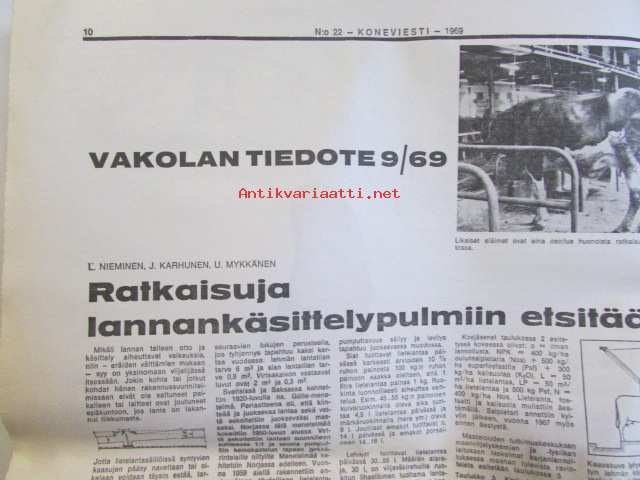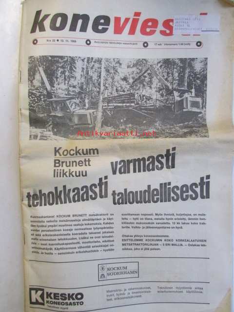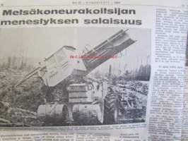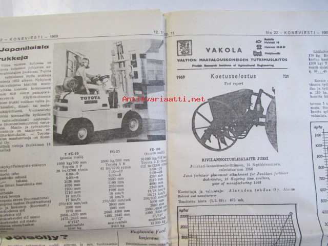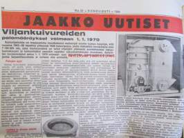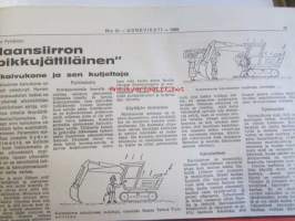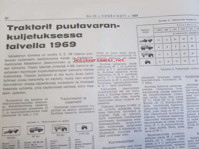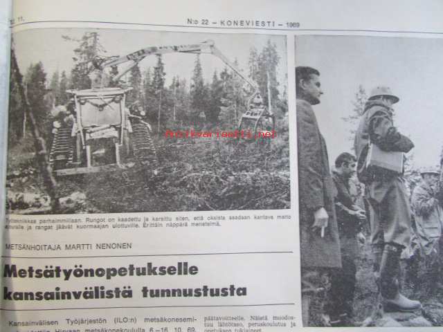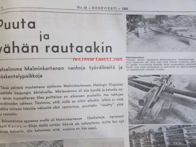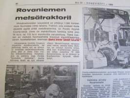 Koneviesti 1969 nr 22 -mm. Kuvasatoa Amerikan maatalouskoneista, Kannataako viljapeltoja kastella? Ajotaidon SM-kilpailut, Vakolan tiedote 9/69 (Ratkaisuja lannankäsittelypulmiin etsitään), Moottorilämmittimet, Uusi traktorirengas vertailevissa kokeissa, Irti tavanomaisesta traktori-työkone-yhdistelmästä, Paikallismoottoreita I, Traktorit puutavaran kuljetuksessa talvella 1969, Hydrostaattiset vaihteistot II, Levyn työstöön liittyvistä koneista ja laitteista, Metsäkoneurakoitsijan menestyksen salaisuus, katso kuvista tarkempi sisältö.