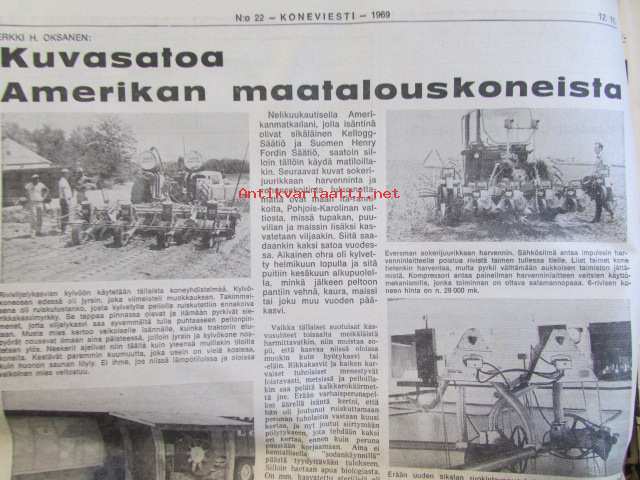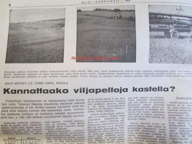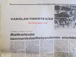 Koneviesti 1969 nr 22 -mm. Kuvasatoa Amerikan maatalouskoneista, Kannataako viljapeltoja kastella? Ajotaidon SM-kilpailut, Vakolan tiedote 9/69 (Ratkaisuja