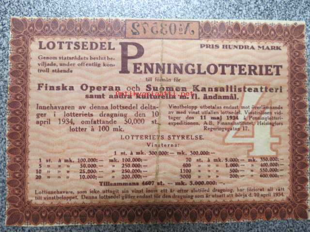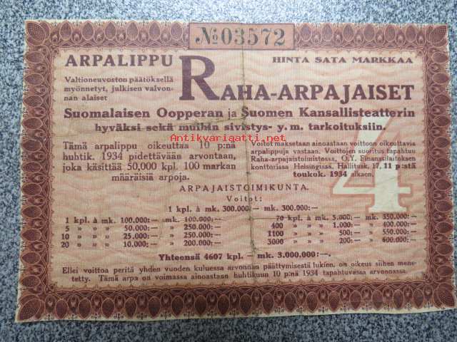 Raha-arpa, Raha-arpajaiset huhtikuu 1934 nr 03572
