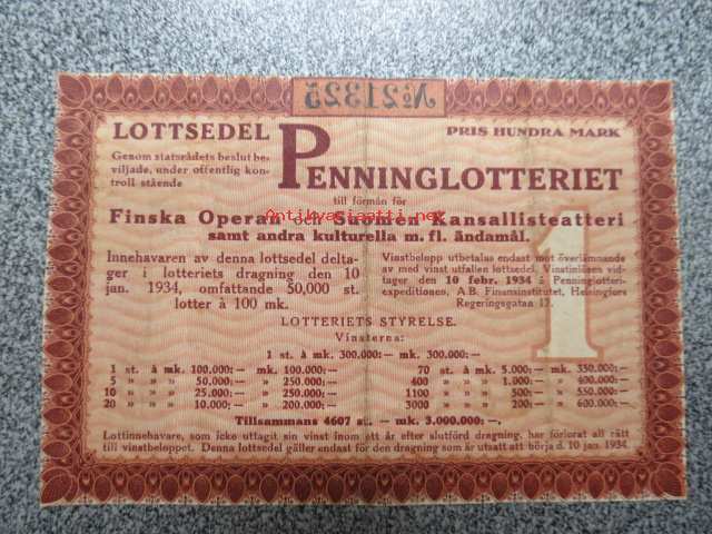 Raha-arpa, Raha-arpajaiset tammikuu 1934 nr 21325