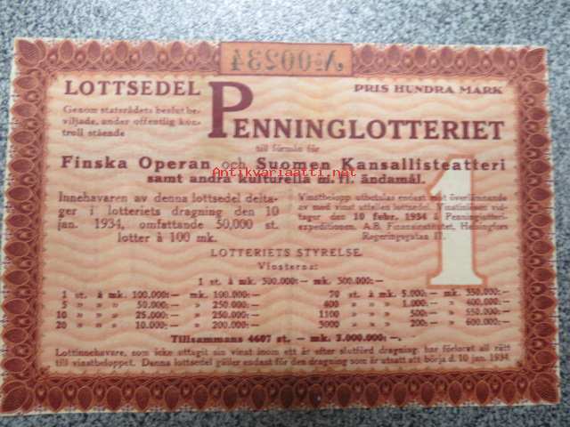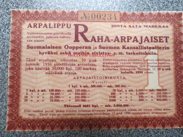 Raha-arpa, Raha-arpajaiset tammikuu 1934 nr 00234