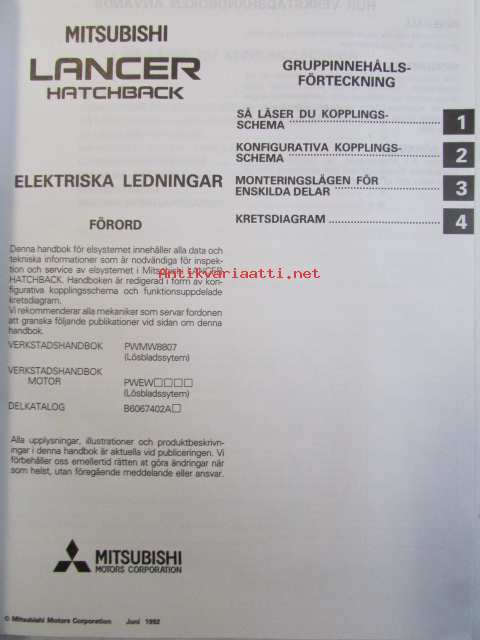 Mitsubishi Lancer Hatchback '93 Verkstadshandbok Elektriska ledningar