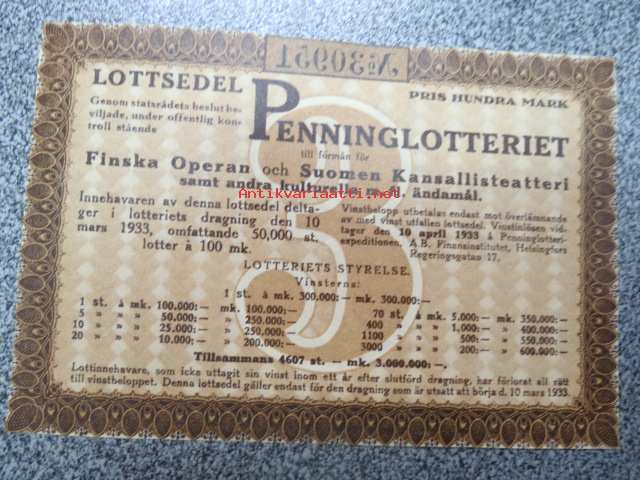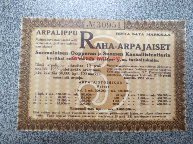 Raha-arpa, Raha-arpajaiset maaliskuu 1933 nr 30951