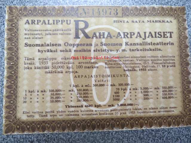 Raha-arpa, Raha-arpajaiset kesäkuu 1933 nr 14973