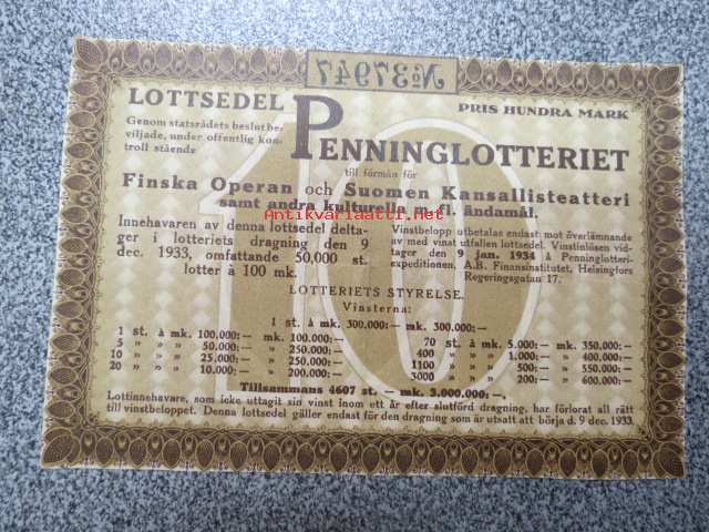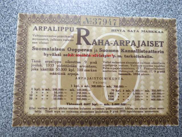 Raha-arpa, Raha-arpajaiset joulukuu 1933 nr 37947