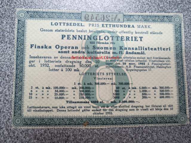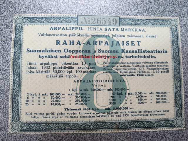 Raha-arpa, Raha-arpajaiset lokakuu 1932 nr 26549