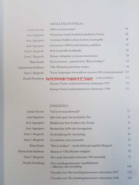 | Saatavilla | 1 kpl | | Julkaisuvuosi | 2000 | | Sivuja | 165 | | Painos | 1 | | Kunto | K3 | | Sidonta/painoasu | Kuvitettu kovakantinen | | ISBN | 951-595-062-7 | | Kielet | Suomi |