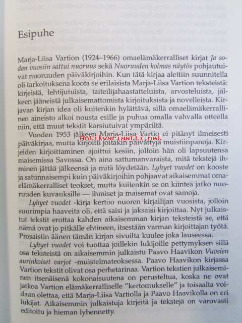 Lyhyet vuodet - Muistiinmerkintöjä ja kirjeitä vuosilta 1953-1966 sekä novelli marjapaikka