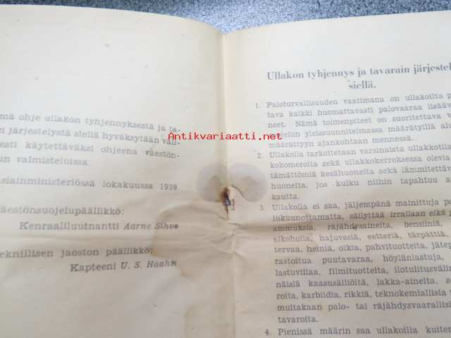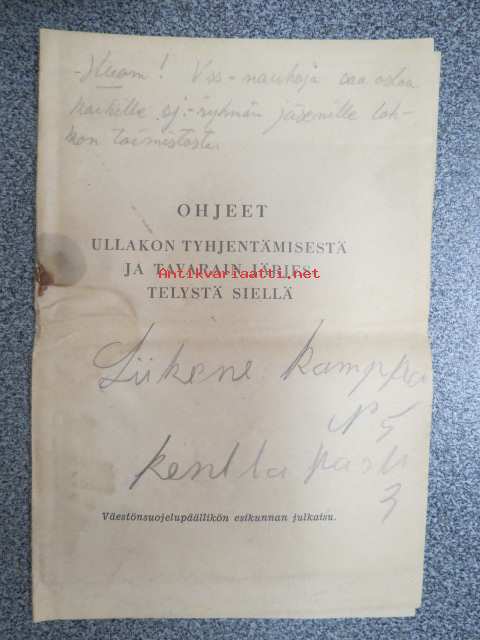Ohjeet ullakon tyhjentämisestä ja tavarain järjestelystä siellä / Väestönsuojelupäällikön esikunta