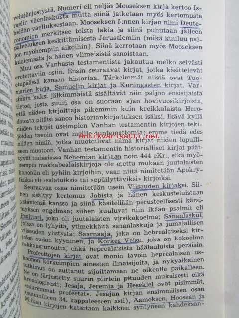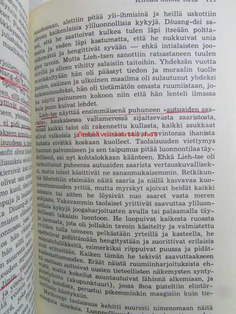| Saatavilla | 1 kpl | | Julkaisuvuosi | 1969 | | Sivuja | 233 | | Kunto | K2 | | Muistiinpanoja ja alleviivattuja lauseita. | | Sidonta/painoasu | Nidottu (pehmeäk.) | | Kielet | Suomi |