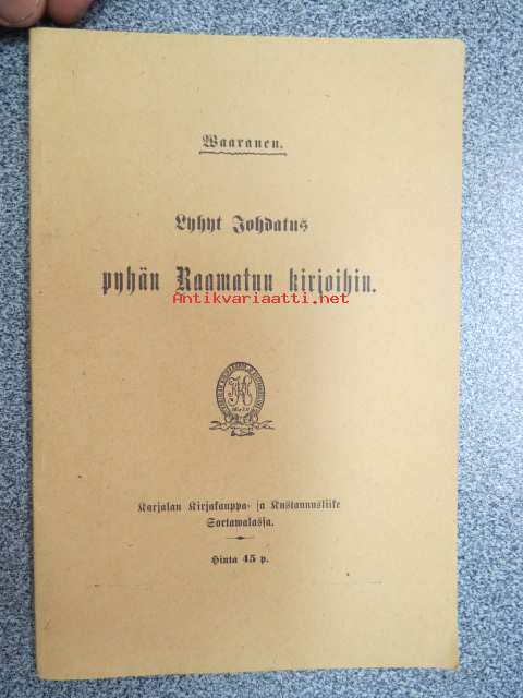 Waaranen K.A. oik. Konrad Aleksander Hougberg, Karjalan Kirjakauppa ja Kustannusliike Oy, Sortavala, 190913 x 20 cm.