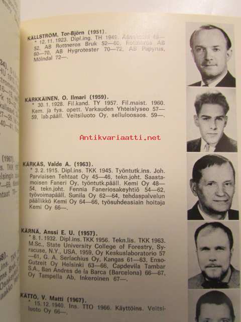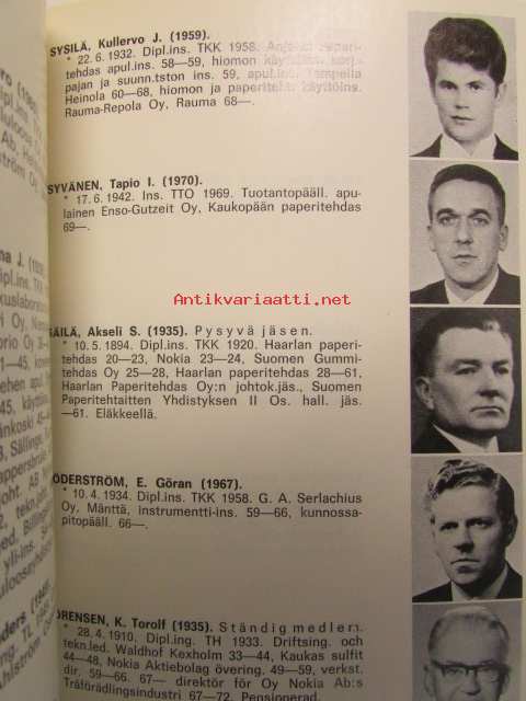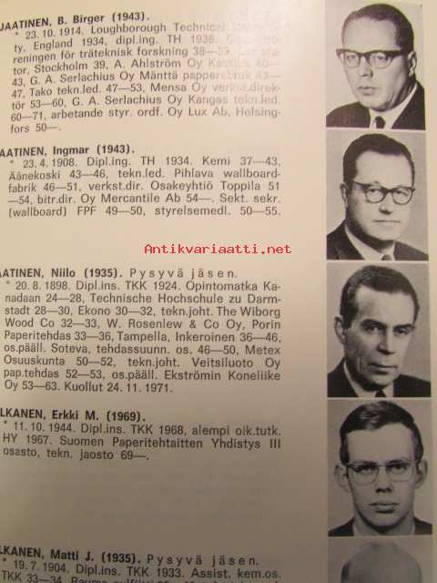 Suomen Paperi-insinöörien Yhdistys kuvamatrikkeli - Finska Pappersingeniörsföreningen bildmatrikel 15.12. 1972