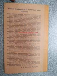| Saatavilla | 1 kpl | | Julkaisuvuosi | 1908 | | Sivuja | 53 | | Painos | 6. | | Kunto | K2 | | Osalla sivuja muistiinpanoja | | Sidonta/painoasu | Kuvitettu kovakantinen | | Kielet | Suomi |
