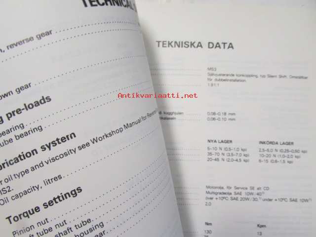 Volvo Penta "Mec Check" Manual -Katso mallikohtaiset tekniset tiedot kuvasta