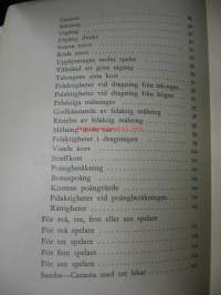 | Saatavilla | 1 kpl | | Julkaisuvuosi | 1953 | | Sivuja | 105 | | Painos | kpl 16000-20000 | | Kunto | K3 | | tyyd/hyvä. ei merkintöjä | | Sidonta/painoasu | Nidottu (pehmeäk.) | | Kielet | Ruotsi |