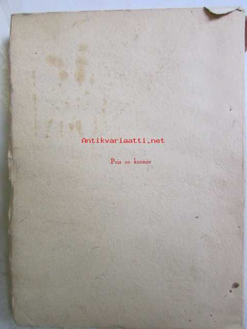 | Saatavilla | 1 kpl | | Julkaisuvuosi | 1936 | | Sivuja | 326 | | Kunto | K3 | | Kirjassa näkyy ajan kulumaa | | Sidonta/painoasu | Nidottu (pehmeäk.) | | Kielet | Ruotsi |